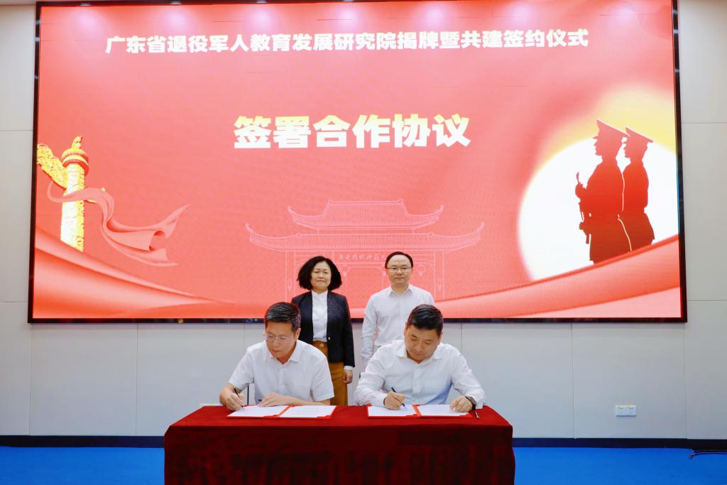 会上,张学君、苏晖代表双方签署合作协议。王创、戴青云、张学君、苏晖以及2名退役士兵大学生代表共同为广东省退役军人教育发展研究院揭牌。